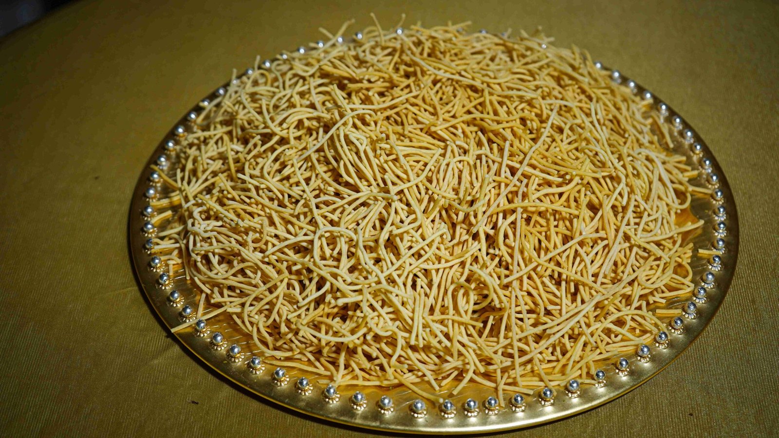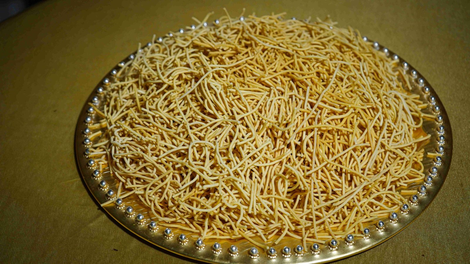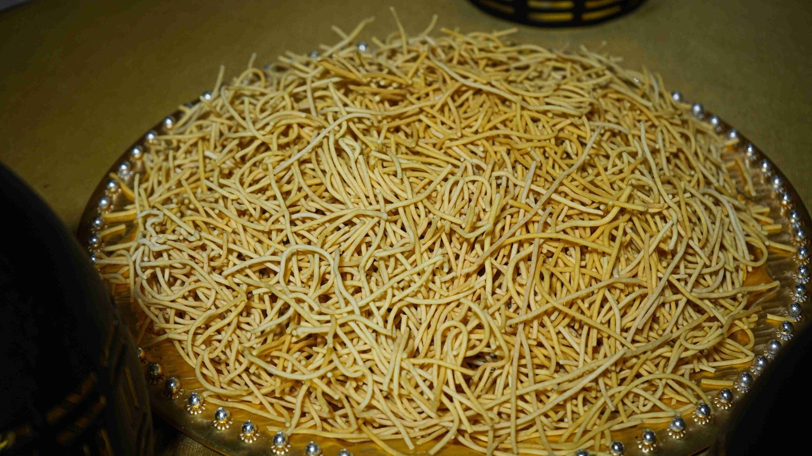 Besan Seviyoon are thin, crispy gram flour sev seasoned with ajwain, black pepper, and spices, fried to golden perfection. Perfect with chai or as a snack anytime.